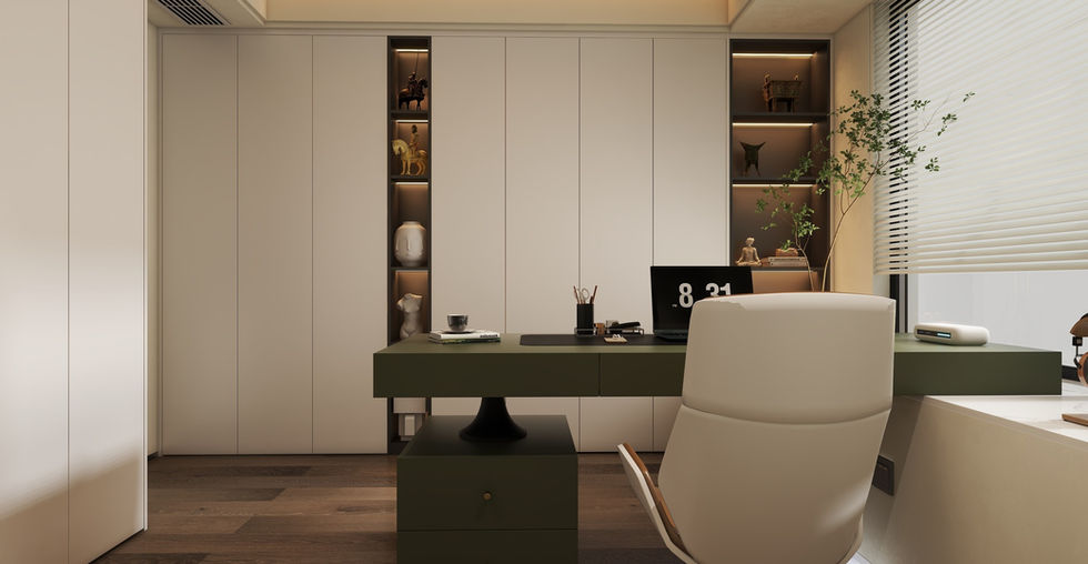 這間屋採用中性色調,如米色、灰色、松木色等,輔以少量溫暖的色光、或少量黑色金屬色作為點綴,營造出明亮而又溫馨的氛圍。這種配色方案不僅給人一種視覺上的舒適感,也讓空間顯得更優雅。